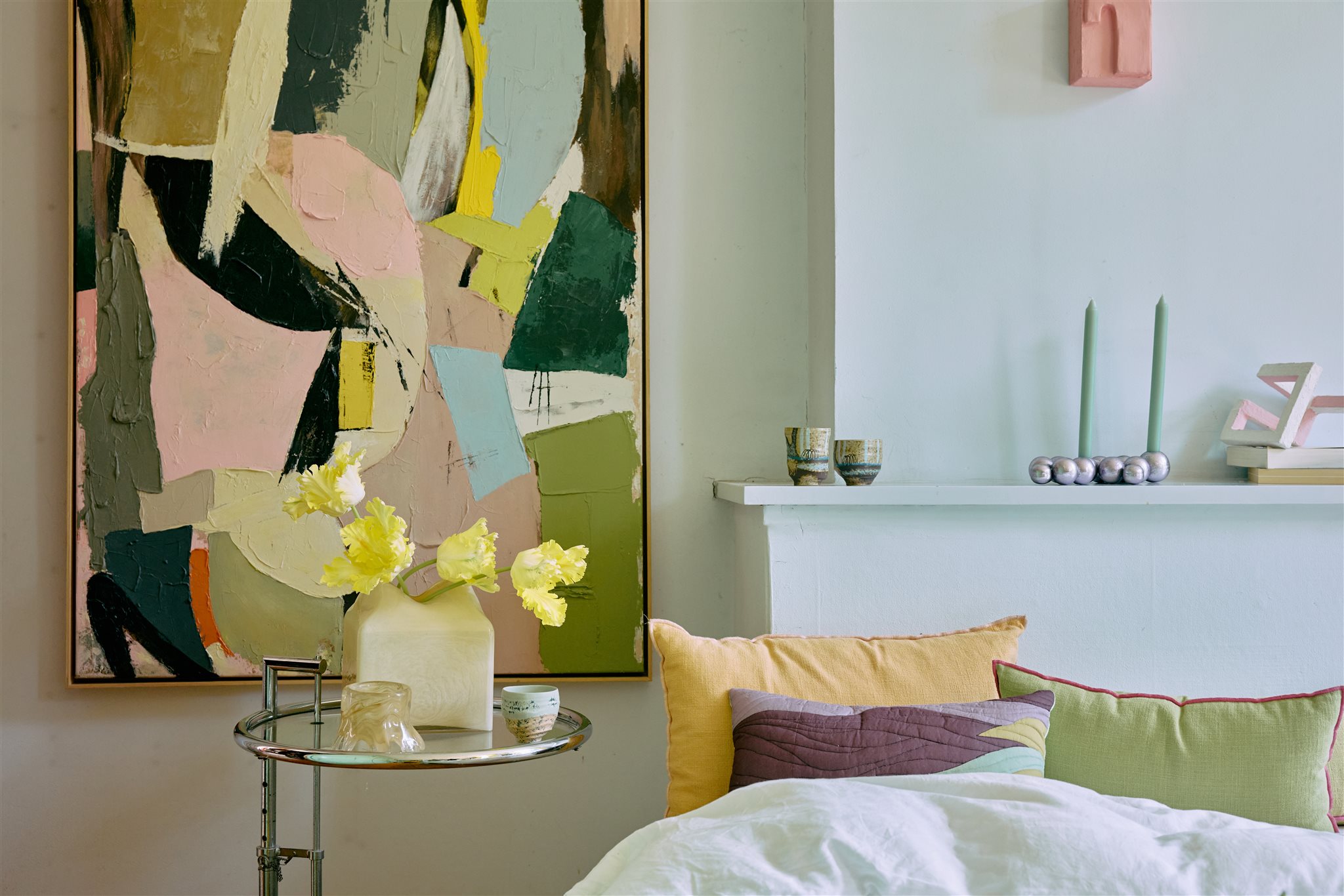 Kleur; beige/zeegroen/blauw