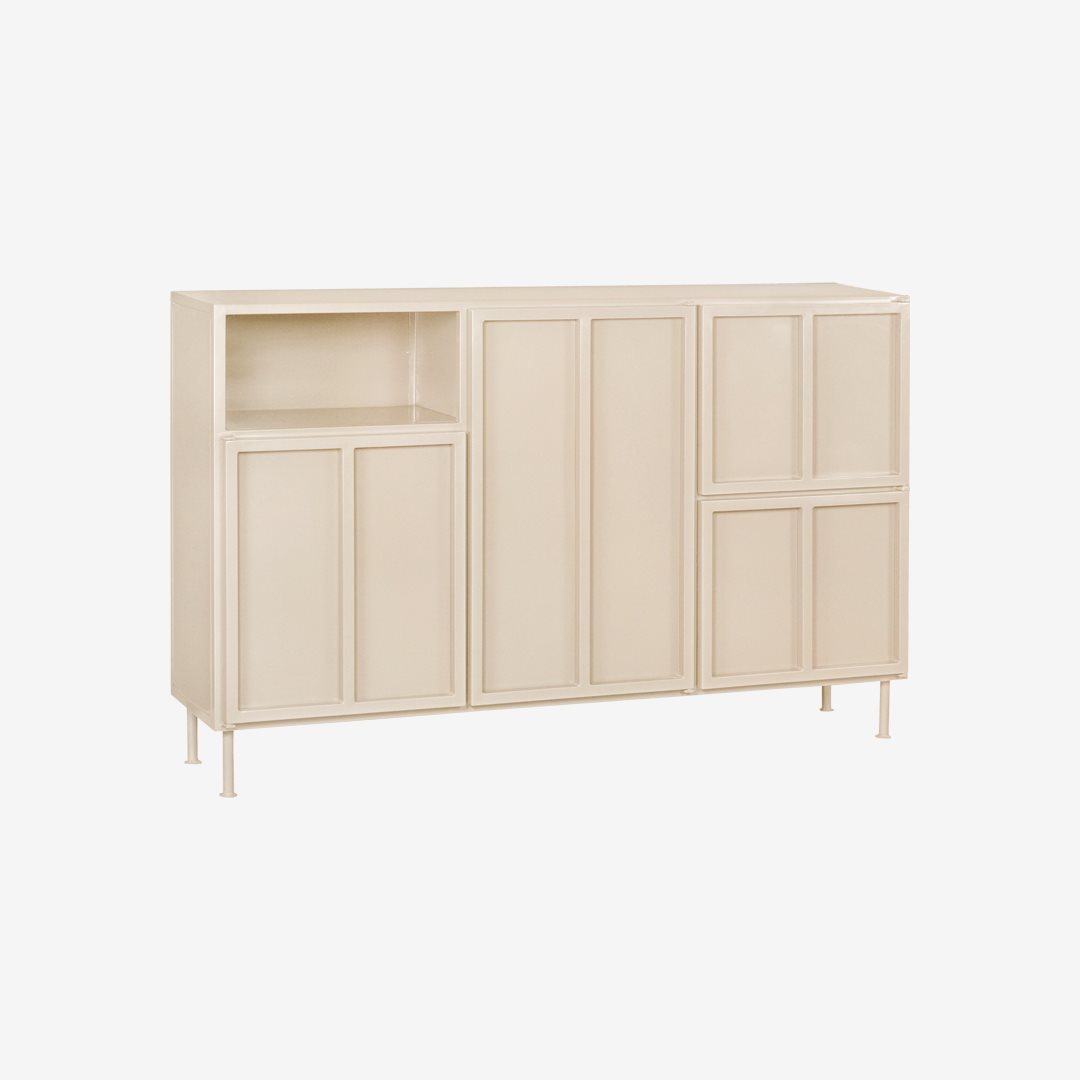 4-deurs dressoir met open vak. Ambachtelijk gemaakt met vintage look in de kleur Zand.