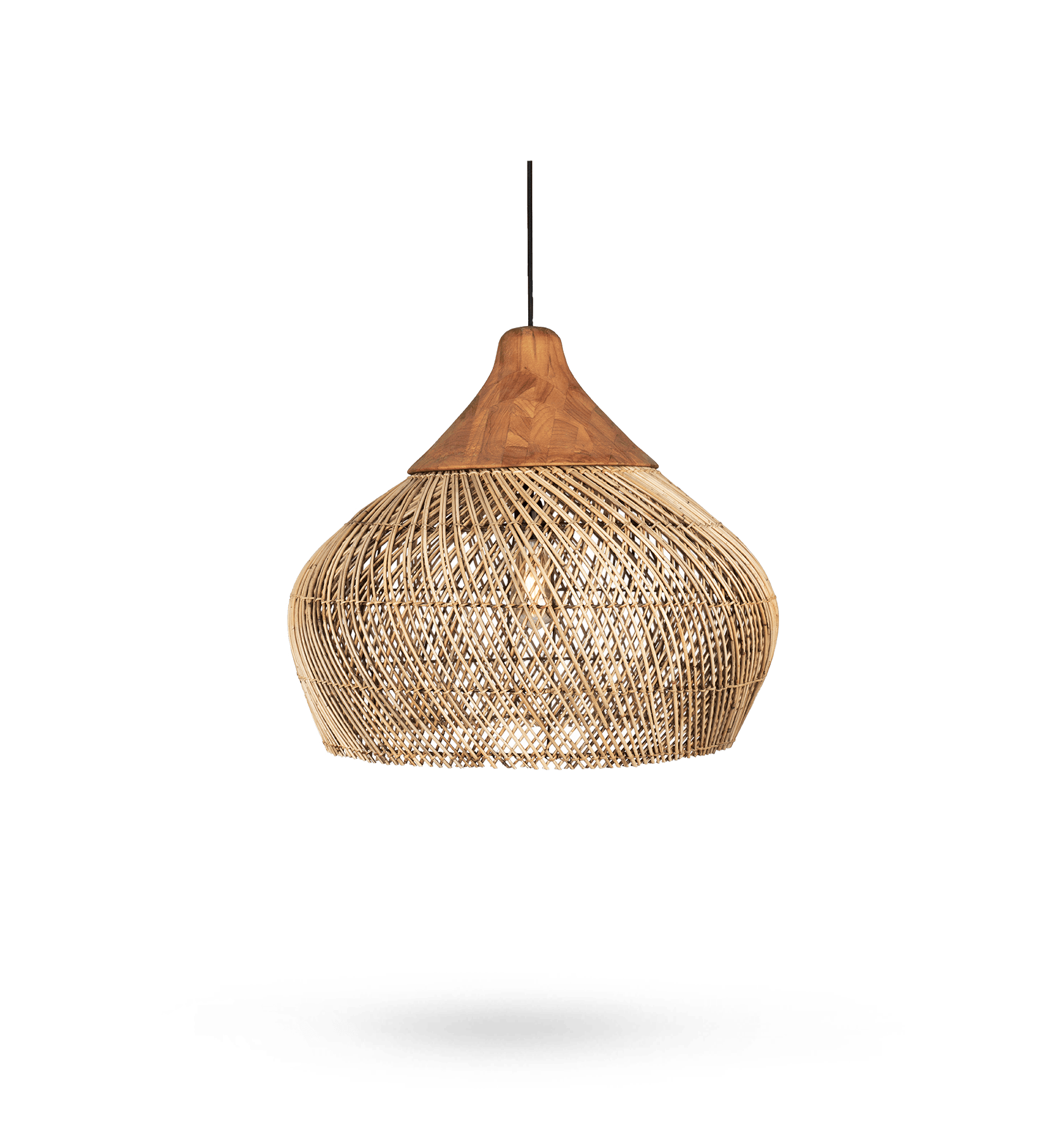 De elegante Harp Lamp heeft een organische vorm met subtiele finesse. Het gedetailleerde weefsel is met de hand gemaakt volgens oude Javaanse techniek en geeft de Harp hanglamp een onderscheidende look. Verkrijgbaar in naturel,brown, kulit of zwart.